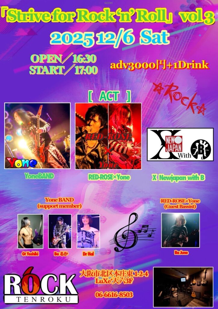 2025.12.6(土) 『Strive for Rock❛n❜Roll』vol3開催!! 詳しくはココをクリック!! Uncategorized 2025.11.08 2025.12.6(土) 『Strive for Rock❛n❜Roll』vol3開催!! 開場16:30 開演17:00